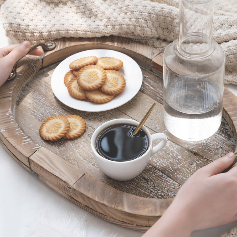 Mit seiner ovalen Form, den leicht erhöhten Kanten und der feinen Maserung eignet es sich perfekt als Dekoelement, Serviertablett oder Fotorequisite für Hochzeiten, Cafés und stilvolle Wohnräume.