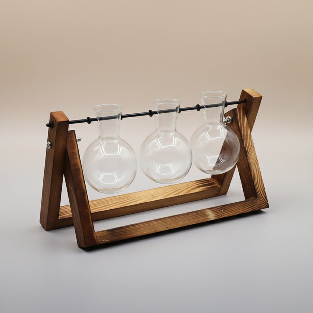 Boho Holz-Schaukel mit Glasvase – Stehende Hydroponik-Vase für Pflanzen