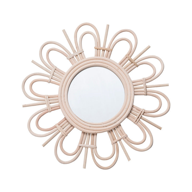 Boho-Wandspiegel aus Rattan – Handgeflochtener Deko- & Schminkspiegel 38 cm